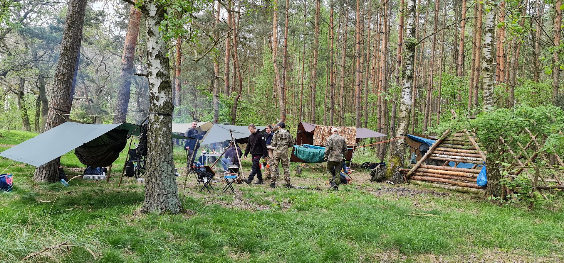 Szkolenie odbywa się w prywatnym lesie w miejscowości Ozorowice pod Wrocławiem. Uczestnicy przyjeżdżają własnym autem, które następnie przeprowadzamy w pobliże obozowiska. Po losowaniu plecaków z wyposażeniem, każdy uczestnik wyrusza do lasu z mapą i instrukcjami, zbierając po drodze rozpałkę, odnajdując sprzęty i wykonując pierwsze zadania terenowe.
